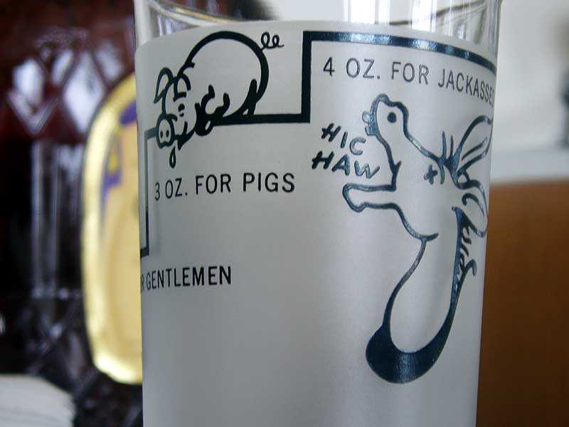 Two ounces for gentlemen, three ounces for pigs, four ounces for jackasses. Who’s going to measure anyway?